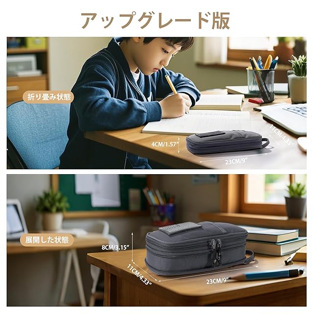 【2層式で大容量 】この筆箱の広げたサイズは23*11*8cmです。ペン類が約50本以上入る大容量デザイン。ハサミ、定規、マーカー、消しゴムなど様々な文房具を収納するのに十分なスペースがあります。そのため、児童、学生、専門家にとって欠かせない仕事道具になります。