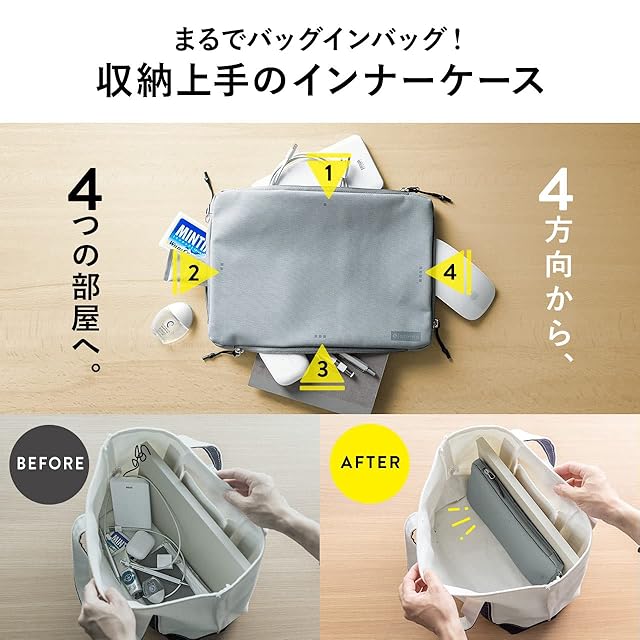[サンワダイレクト] ガジェットポーチ 薄型 B5 バッグインバッグ 4層ポケット トラベルポーチ グレー 200-BAGIN030GY
