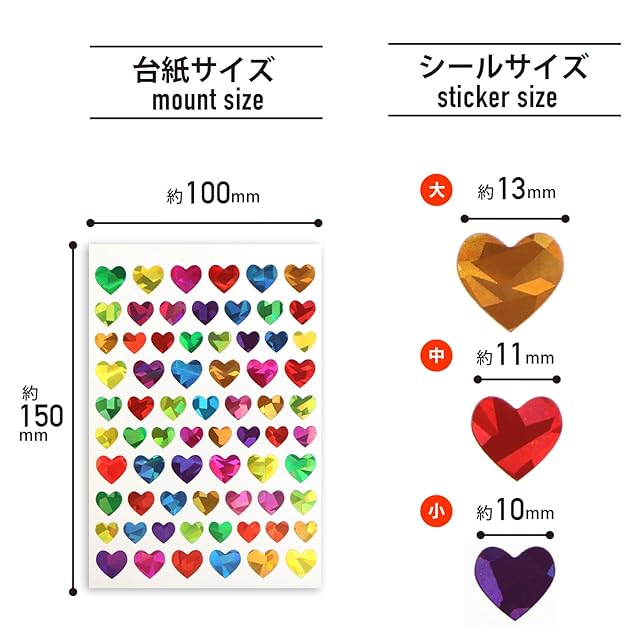 【サイズ】台紙:100×150mm 、ハート:10×10mm、11×11mm、13×13mm