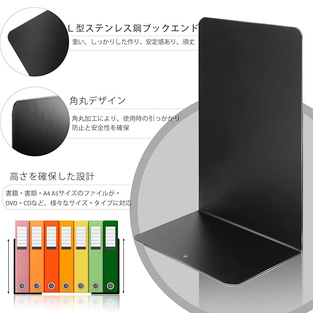 良い耐久性:厚いスチール製で、丈夫で辞書みたいな分厚い本がいっぱい入れても変形しにくく耐久性が良いです。底面に滑り止めのゴムが四つ付いていて倒れにくいだけではなく、摩擦を減らして机に置いたとき音が小さくなります。音に驚かされるのを心配しないでください。