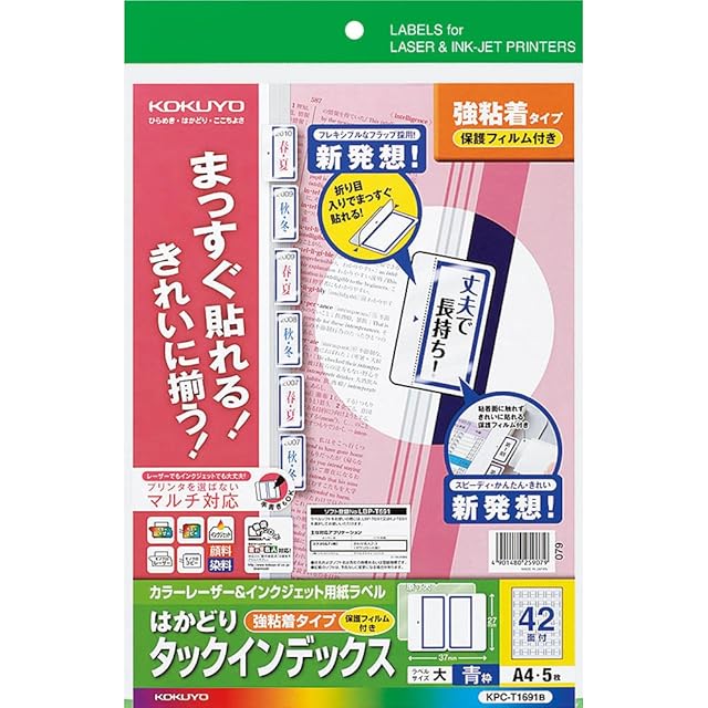 コクヨ(KOKUYO) カラーレーザー インクジェット タックインデックス 保護フィルム付 KPC-T1691B