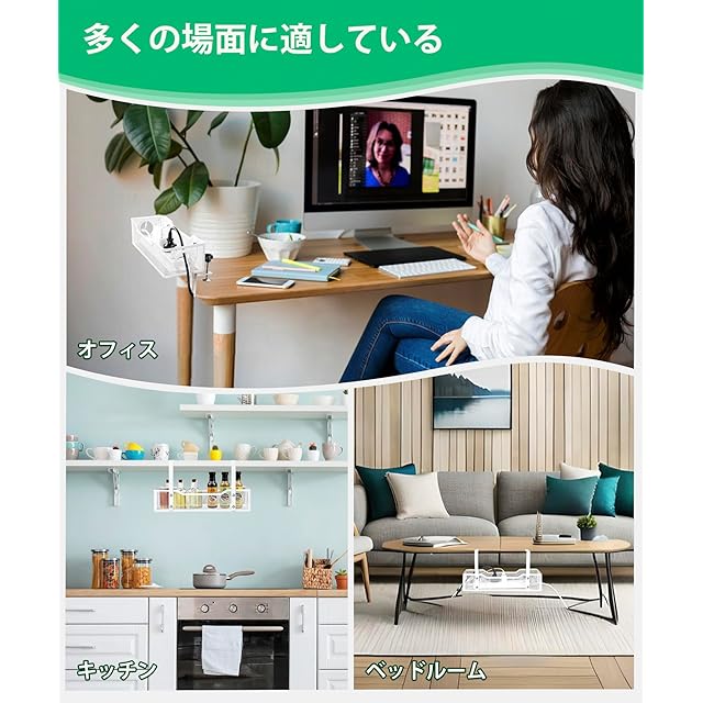 【自由自在に長さを調整可能】デスク天板は厚さ1~6cmに対応しています。自分のニーズに応じて、 適当なサイズを調整して、電源タップ 収納、WIFI ルーター 収納、PCケーブル 収納などに使用できます。デスク周りの配線 整理するためのケーブル配線トレーでデスク周りにごちゃごちゃになりがちな電源タップやケーブル類をまとめてデスクの下に隠すことができます。