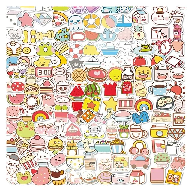 【190枚セット】ポップ&カラフル ステッカーセット スイーツ カフェ ゆるキャラ イラスト 防水 人気 手帳 ノート スマホ DIY プレゼント 子供 多用途 シールパック ごほうび 学用品
