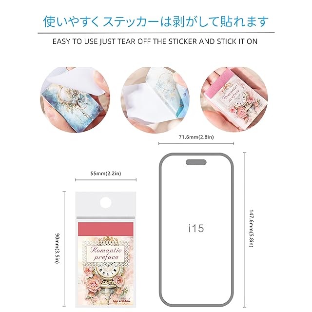 手帳デコ、スケジュール帳、日記帳、ガイドブック、メモ用紙にと、封筒、小袋やお手紙の封かんシールとして使ったり、贈り物、プレゼ ントのラッピング、手作りお菓子や小物の包装、空箱などどこでも飾ることができます。紙に貼るほか、ビンやお部屋の小物に貼ったりするのもオススメです