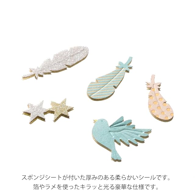 スポンジシートが付いた厚みのある柔らかいシールは、箔やラメの輝きでキラッと光り、華やかな印象になります。