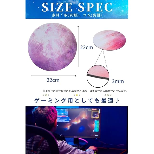 【 マウスパッド 】 惑星をモチーフにしたユニークなマウスパッドです。光学式マウス・レーザー式マウスのどちらにも対応した円形タイプとなっております。