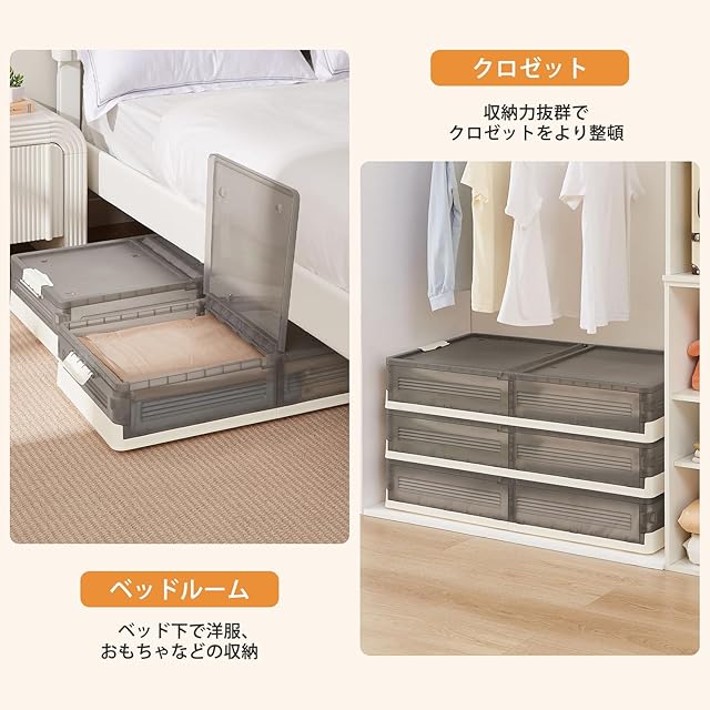 【折り畳み式・省スペース】こちらの収納ボックスはクローゼットの上部や中、ベッド/ソファーの下など、隙間のスペースを最大限に利用して活用できます,効率よく収納して、あなたの部屋を節約し、スペースの有効活用性が高い。