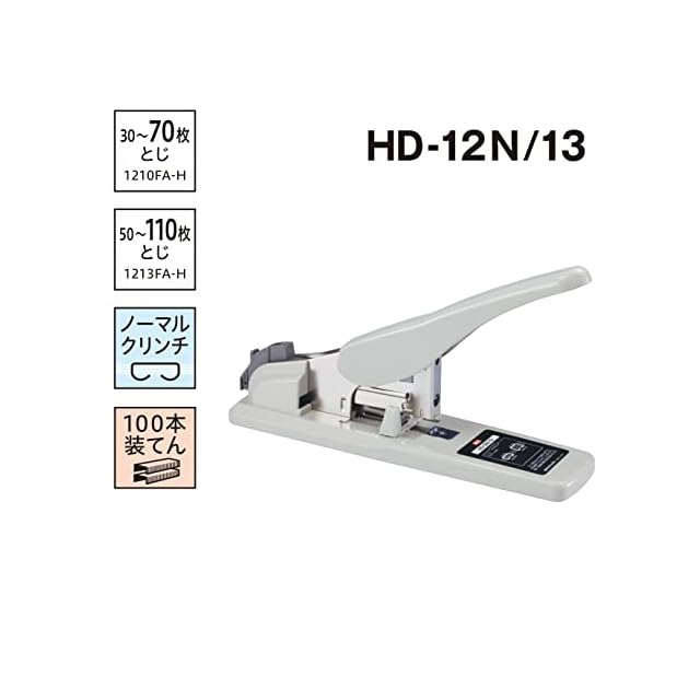 マックス ホッチキス 大型ホッチキス 12号針使用 30~110枚とじ グレー HD-12N/13