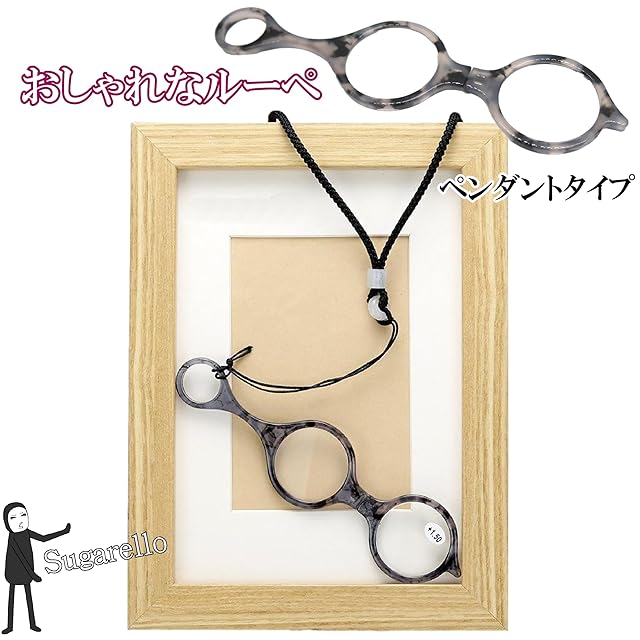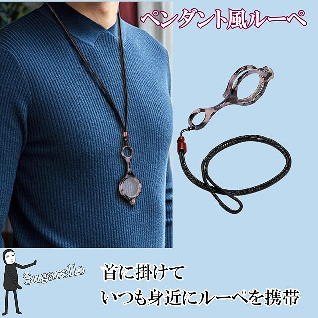 Sugarello ペンダントルーペ 首掛け 携帯用 ネックレス 拡大鏡 ルーペ眼鏡 ペンダント ルーペメガネ ルーペネックレス おしゃれ 折り畳み レディース プレゼント (+2.5 70代)