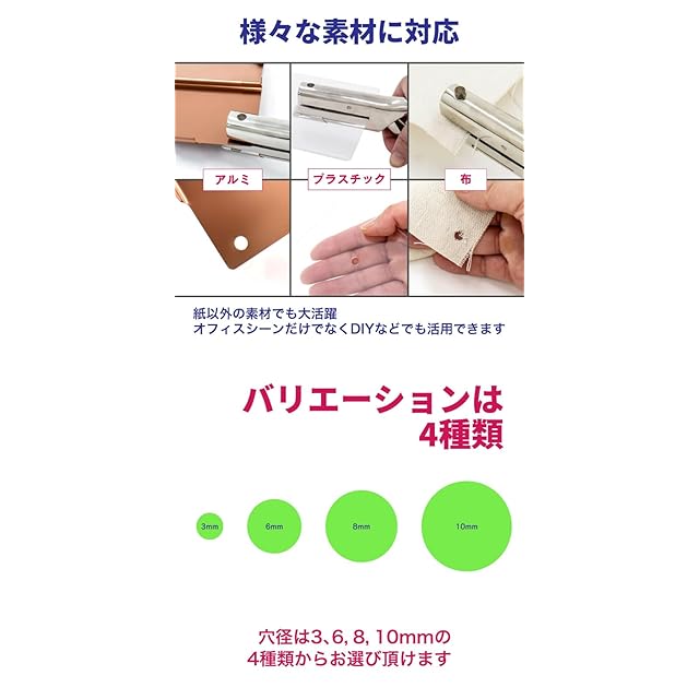 FUNKS 穴あけパンチ 1穴 単穴 穴径6mm 3mm 8mm 10mm 事務器 深穴 深さ53mm パンチ (10mm)