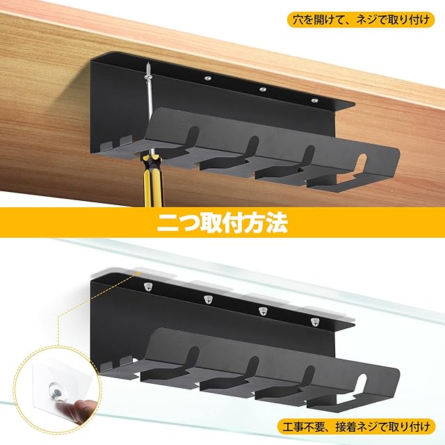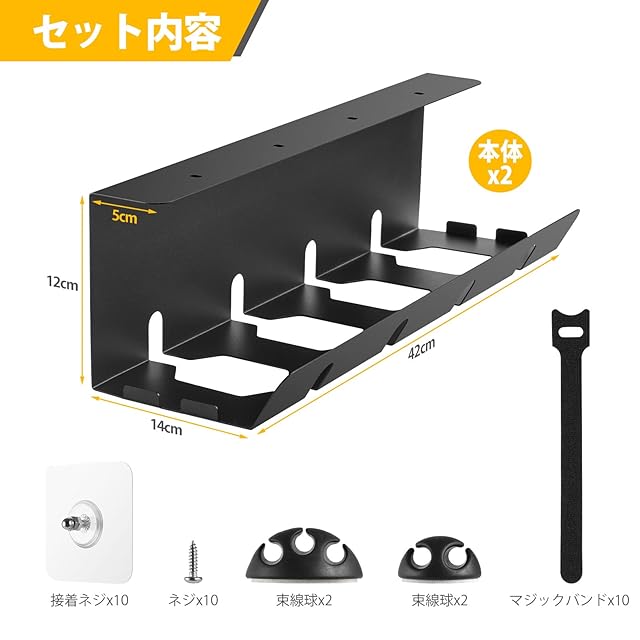 【2個セット】ケーブルトレー ワイヤーデスク下 配線整理 ケーブル収納 デスク配線トレー 長さ42cm デスク下 コンセント収納 炭素鋼ケーブルラック ワイヤー穴あけ不要 コード整理 配線隠し