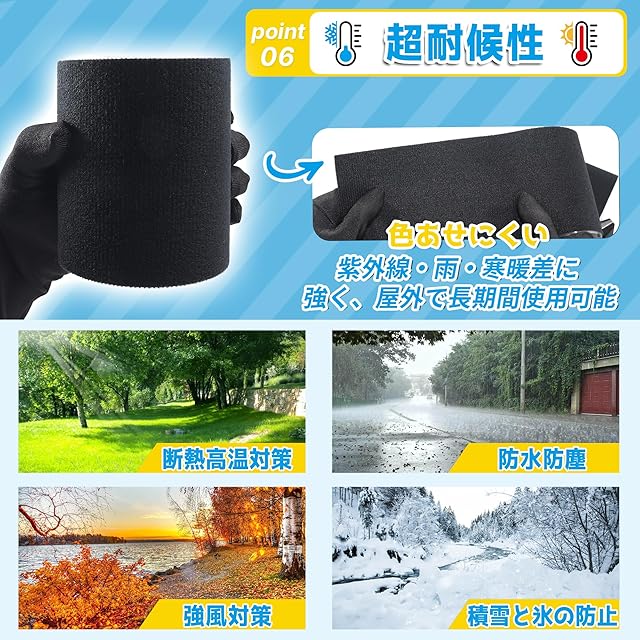 【強力防水&耐久性】超強力防水補修テープ!柔軟かつ高強度なナイロン素材で、耐候性・抗撕裂性に優れています。タープ/カンバス/オーニング/車シート/ビニールの補修に最適。雨・紫外線に強く、洗濯後も剥がれず変形しません。長期使用でも褪せない耐久設計です。