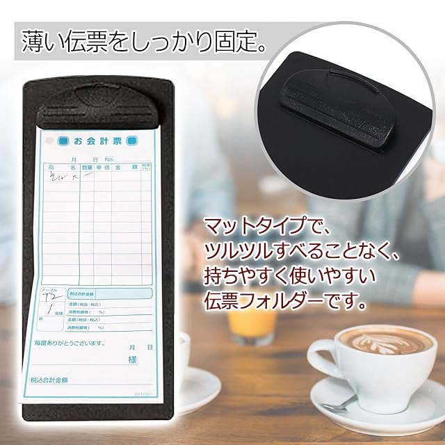薄い伝票をしっかり固定。マットタイプで、ツルツルすべることなく、持ちやすく使いやすい伝票フォルダーです。