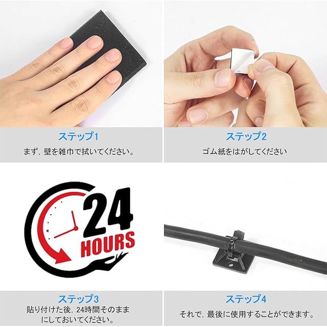 【セット内容】ケーブルホルダー:100個,結束バンド:100本,カラー:ブラック。