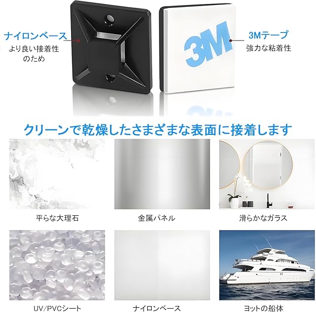 【セット内容】ケーブルホルダー:100個,結束バンド:100本,カラー:ホワイト。