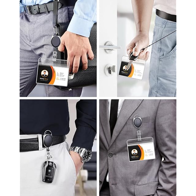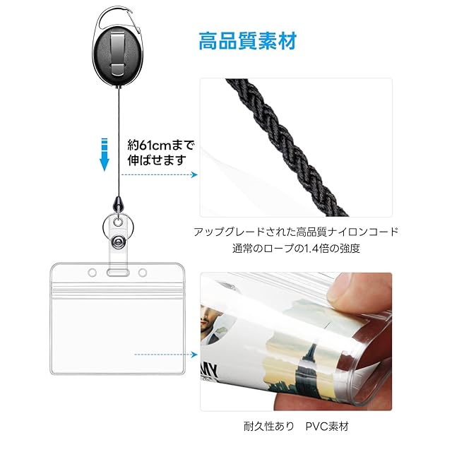 簡単にアクセスできる設計:最大60cmまで伸縮可能なブラックナイロンコードを搭載しており、目視確認、自動チェック、スキャンなどの操作がスムーズに行えます。リールのバネの力が強く、ぶらぶらしない。使いやすさ抜群で、日常生活や仕事に便利です