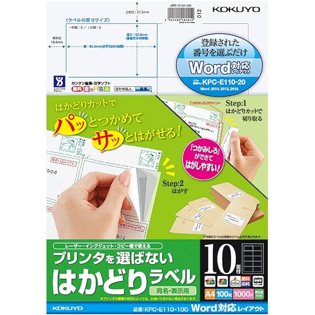 コクヨ プリンタ兼用 ラベルシール 10面 100枚 KPC-E110-100N