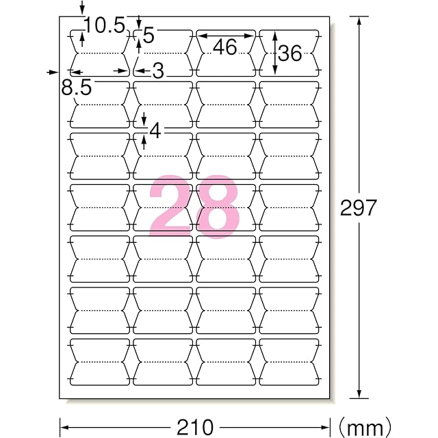 A4判 28面 角丸/シートサイズ:A4判(210mm×297mm)/ラベルサイズ:46mm×36mm(4列×7段)