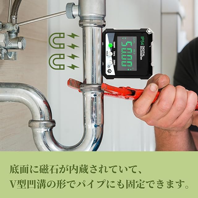 SCITOOLS デジタル角度計 IP54 防水防塵 0-360°測定範囲 角度ルーラー 角度定規 LCD液晶画面 持ち運び便利 読みやすい 自動電源オフ 傾斜計 分度器 日本語取説付き