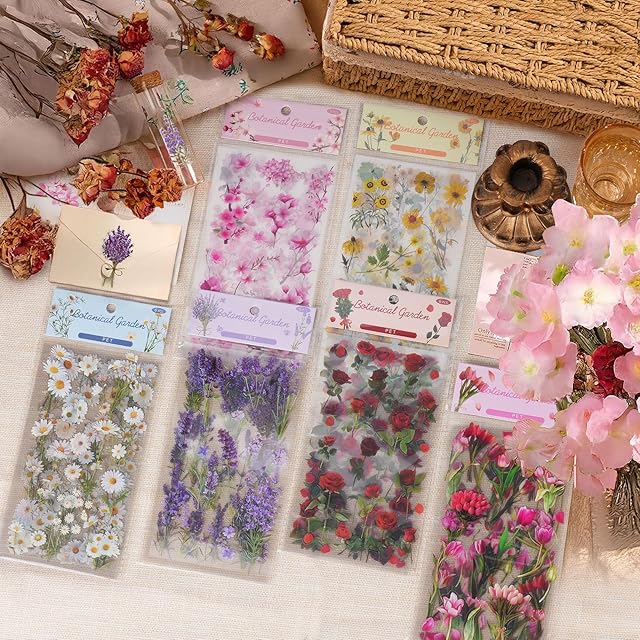 【大容量のコラージュシール】桜やチューリップ、ラベンダー、ひな菊、ひまわり、バラのステッカーは各6枚入りのセットが6冊あり、合計666枚です