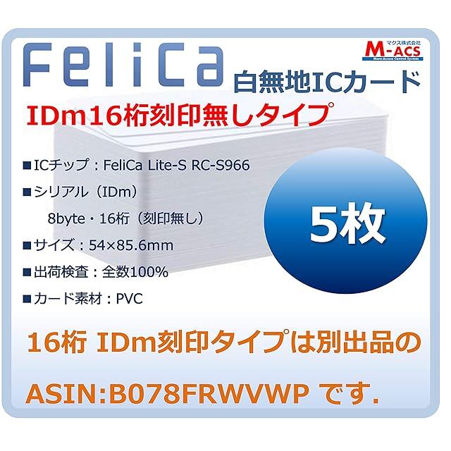 商品名:Fe-001【5枚セット】【白無地 刻印無し ※IDm未開示】フェリカカード FeliCa Lite-S フェリカ ライトS ビジネス(業務、e-TAX)用 RC-S966 FeliCa PVC