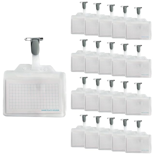 商品名:【まとめ買い】名札ホルダー 20個(2個入り×10袋) 名刺ホルダー 安全ピン & クリップ付き ソフトタイプ 名刺ケース スタッフ 社員証 イベント 展示会 横型