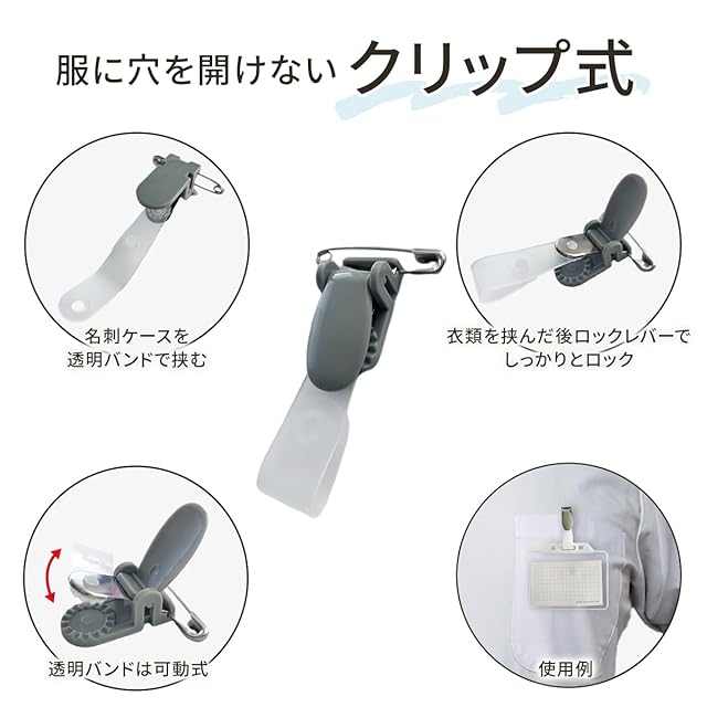 ✅クリップ部に安全ピンが付属しておりますので、服装に応じて使い分けができます。また、ヒモを通せる穴付きで首から下げることも可能です。(ヒモは別途用意ください。)