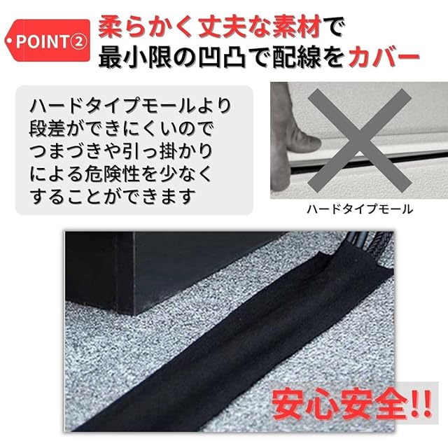 KURONEKOYA 配線カバー カーペット用 3M ケーブルカバー 配線モール コード隠し 床 プロテクター 配線隠し オフィス ソフト マジックテープ