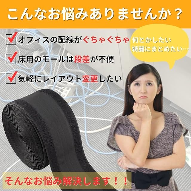商品名:KURONEKOYA 配線カバー カーペット用 3M ケーブルカバー 配線モール コード隠し 床 プロテクター 配線隠し オフィス ソフト マジックテープ