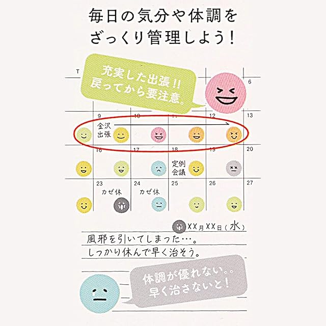 手帳、スケジュール帳、カレンダーに貼ることで、体調や気持ちの変化がひとめでわかる「気持ち」シール。