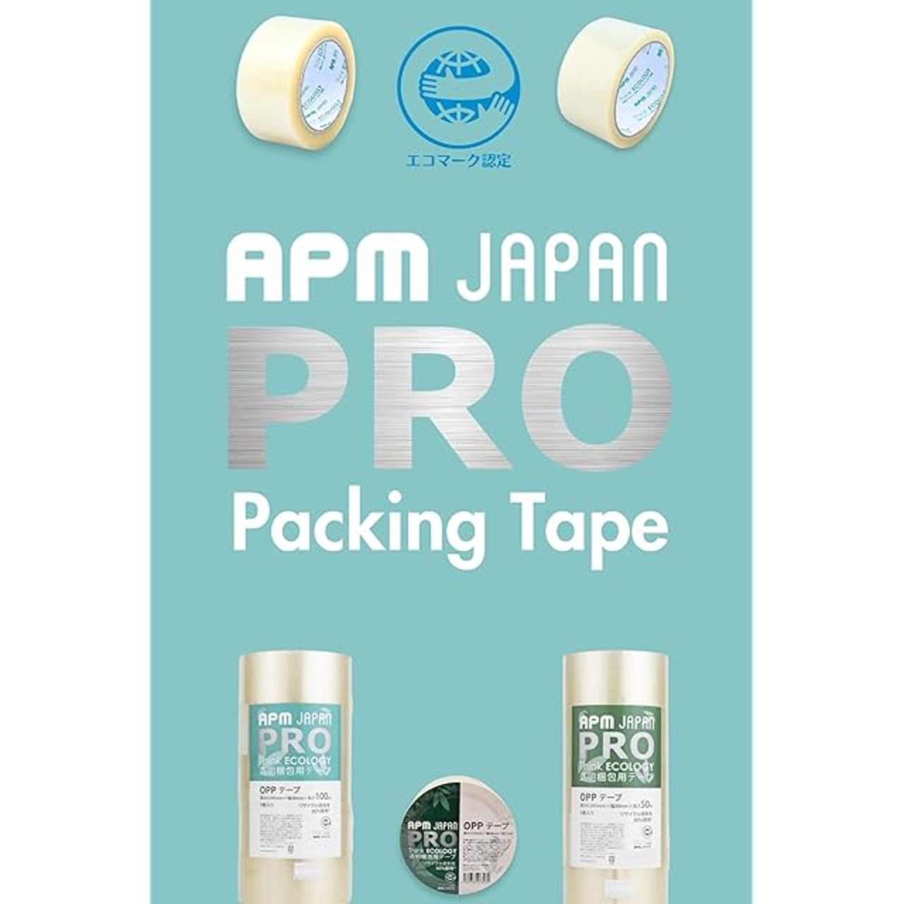 <APMJAPAN PRO Think ECOLOGY 環境にやさしい透明OPPテープ> 使うだけでCO₂排出量を50%以上削減できる環境配慮型の透明梱包用テープを、従来と変わらぬコスパでご提供。再生材料を60%以上配合したエコマーク認定製品で、企業様のSDGs活動や、環境意識の高いユーザー様のエコロジー対策をサポート。強度や作業性はそのままに、コストを抑えた"サステナブルな梱包"を実現します。