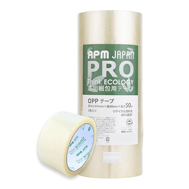 商品名:APMジャパン 環境にやさしい OPPテープ 中軽量用 48mm×50m 5巻パック Think ECOLOGY 透明梱包用テープ 透明テープ ガムテープ