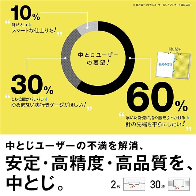 Vaimoシリーズの中とじホッチキス、とじ枚数2~30枚(最大120ページ)の中とじが可能