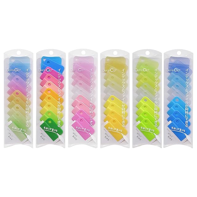 インデックスとファイルが同時にできるクリップ。。ワンタッチでクリップするだけでインデックスになるので、とりあえずクリップしておいて、後でゆっくり整理できます。。また油性ペンで書き込めるので、色分けだけでなく文字で細かく分ける事もでき、使い終わったら消しゴムで消して繰り返し使えます。。クリップは6mm径の穴付きで、リングにまとめたりフックに掛けたりも可能。。コピー用紙20枚まではさめる、便利でカラフルなクリップです。。。クリップサイズ:横40mm。×。縦32mm。×。奥行き5mm。入り数:10個。。