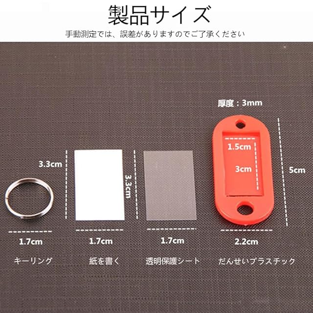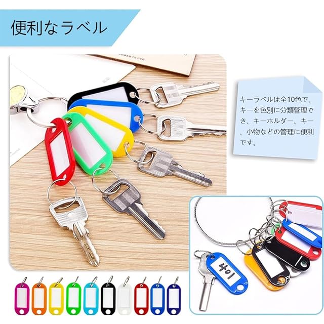 商品名:[YJRUNFU] タグ キータグ タグ キーホルダー 名札 50個 キーリング 名前ホルダー プラスチック製 ラベル ホームキーフォブラベル ID 荷物 キーリングタグ 鍵タグ 鍵 ラベル 大量 業務用 軽量 持ち運び (10色)