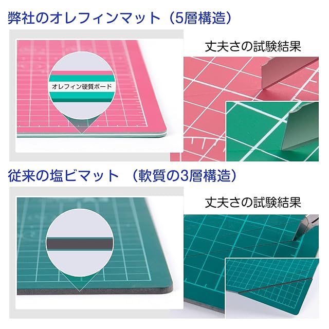 【自己回復機能と耐久性UP】カッター作業してすぐ、傷が自己回復していく、軟質表面層は刃先からの抵抗をしなく、カッター作業にも滑りません。