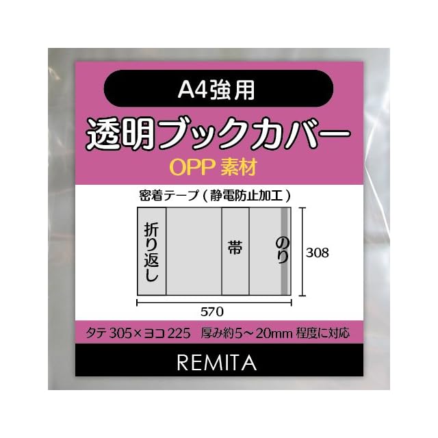 商品名:REMITA 透明ブックカバー A4強用(例:楽譜・美術書など) 15枚 OPP素材 BC15A4HOP
