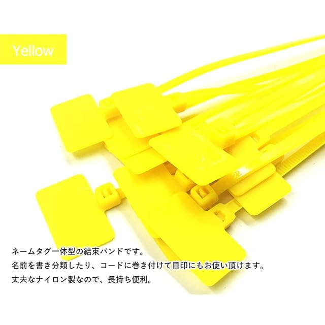 ネームタグ一体型の結束バンドです。名前を書き分類したり、コードに巻き付けて目印にもお使い頂けます。丈夫なナイロン製なので、長持ち便利。