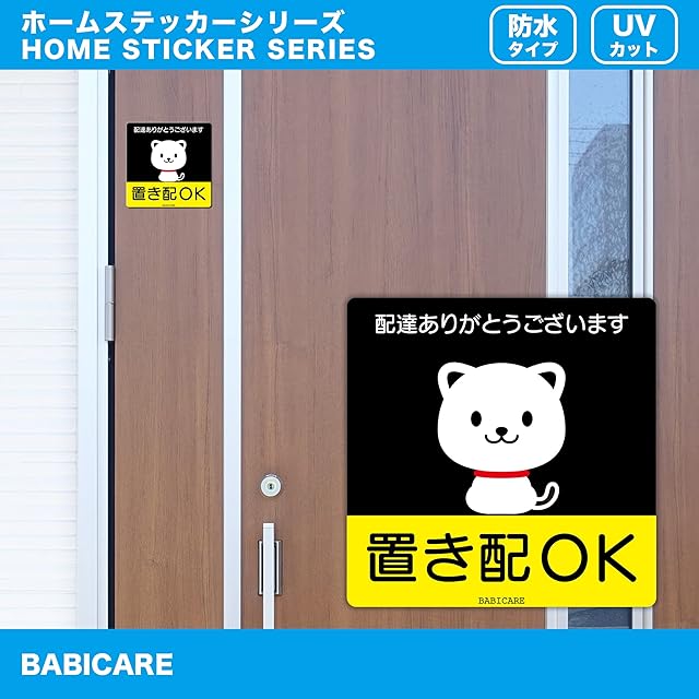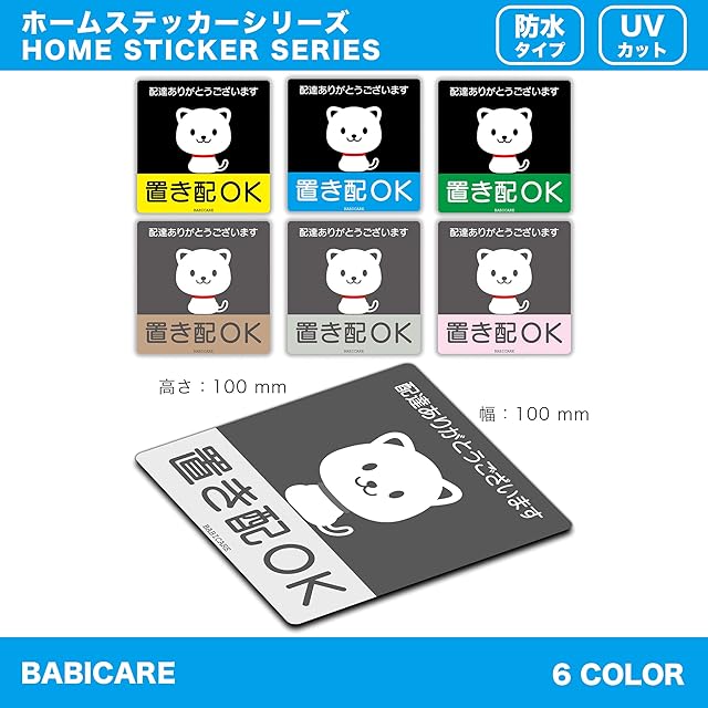 【BABICARE】置き配OK ステッカー シール プレート PETに印刷 表面ラミネート加工 効果UP 100X100mm (イエロー, M(100X100mm))