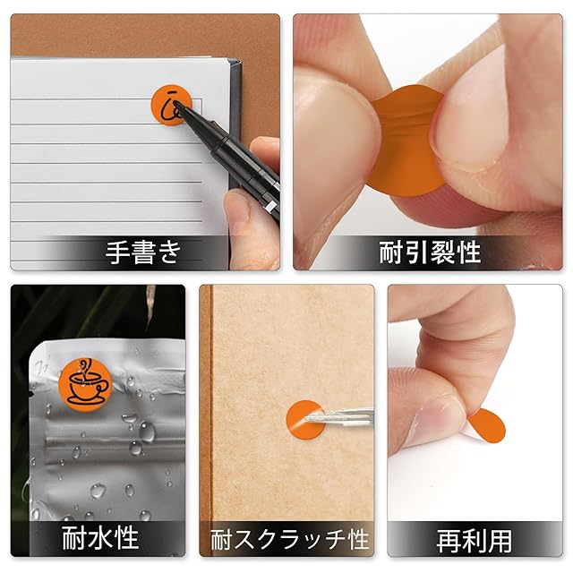 【手書き】:この耐スクラッチ性ステッカーは、高品質なインクを使用し、一目で見分けがつく明るい色で印刷されており、表面にマーカーペンで数字や賞味期限などの内容を書くことができます。