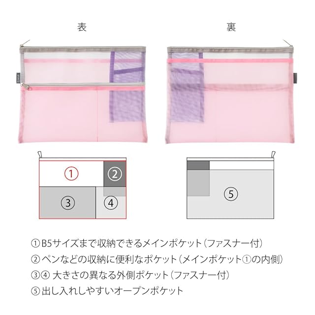 ミドリ マルチポーチ ペン&ツールポーチ B5 メッシュ ピンク 53354006