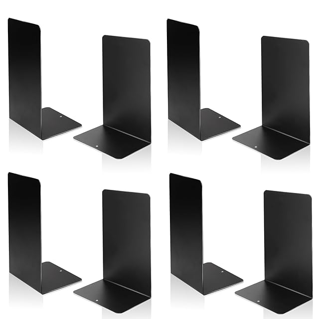WEWINK PLUS 8 枚 本立て 金属製 ブックエンド ブラック 倒れない滑り止め付き デスク整理 4セット 文房具 変形しにくい事務用品 新聞 ファイルCD 辞書 雑誌 書類入れ 多機能のブックスタンド