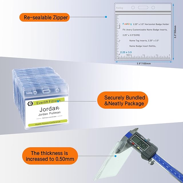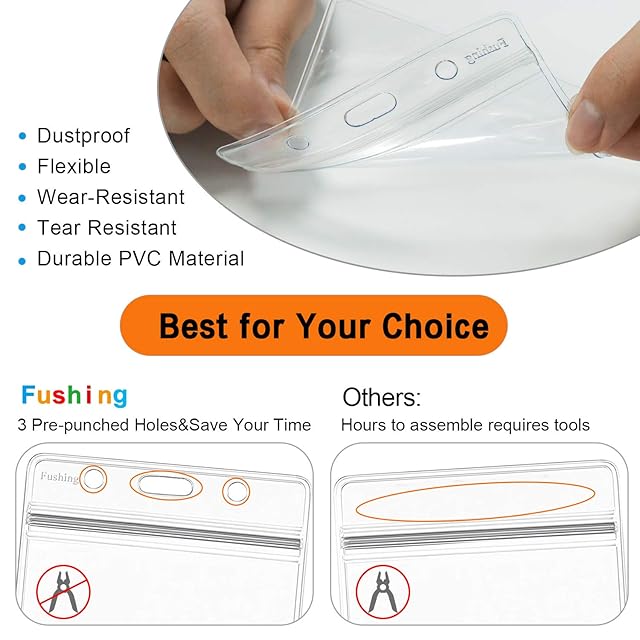 Fushing 100個透明ビニール 横型 ネームタグ セット バッジ IDカードホルダー