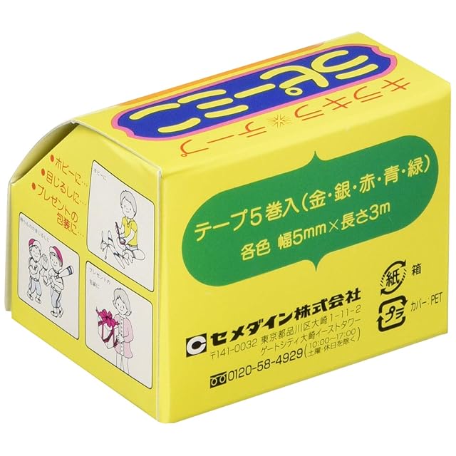 セメダイン ラピーミニ キラキラ粘着テープ5mm幅×3m 5色セットTP-275