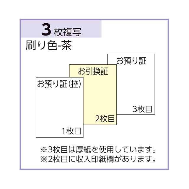 A6タテ 105×148mm80セット項目名:1,お預り証(控);2,お引換証;3,お預り証複写枚数:3