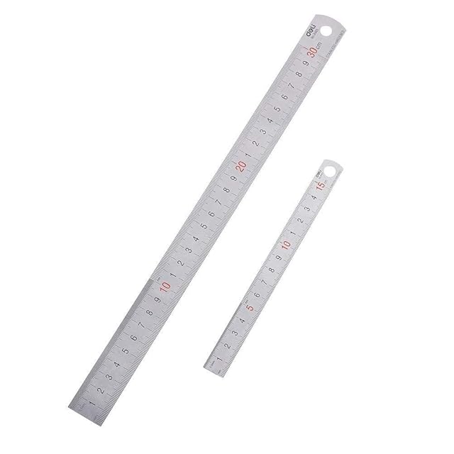 ステンレス直尺 定規 300mm(大)x1、150mm(小)x1、 2本セット「ミリメートルとインチの交換表付き」