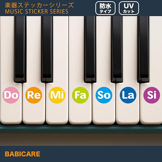 【BABICARE】ドレミ 音名ステッカー 42枚セット 英語&日本語対応|鍵盤ハーモニカ・ピアノ・電子キーボード対応|直径1cm 丸型|耐摩耗・保護フィルム付き