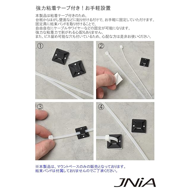 [JNiA] マウントベース ケーブル 固定 [100個セット/3M高粘着で剝がれにくい!ご自宅はもちろん、車内、オフィス、デスクなど様々なシーンで使用可能です。]