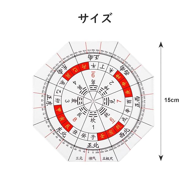 商品名:方位分度器 八角形 15cm 全透明 8角形分度器に東西南北 全円分度器 透明方位盤 玄空飛星 八宅風水 風水羅盤透明シート 家相 地相 干支 方位 分度器 九星 気学 八方