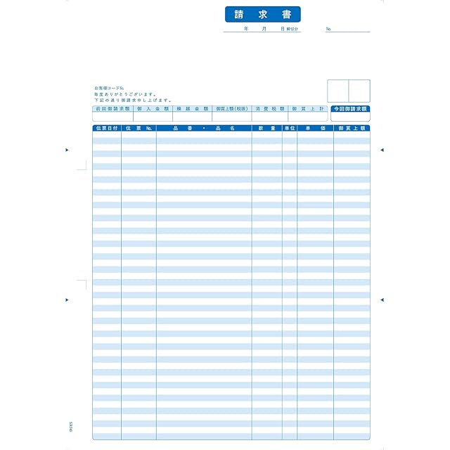 ソリマチ「販売王シリーズ」対応の明細請求書(要確認) 請求内容を一覧形式で印刷できます。 ●パンチ穴加工 ●三ツ折ガイドマーク 安心の日本製です。